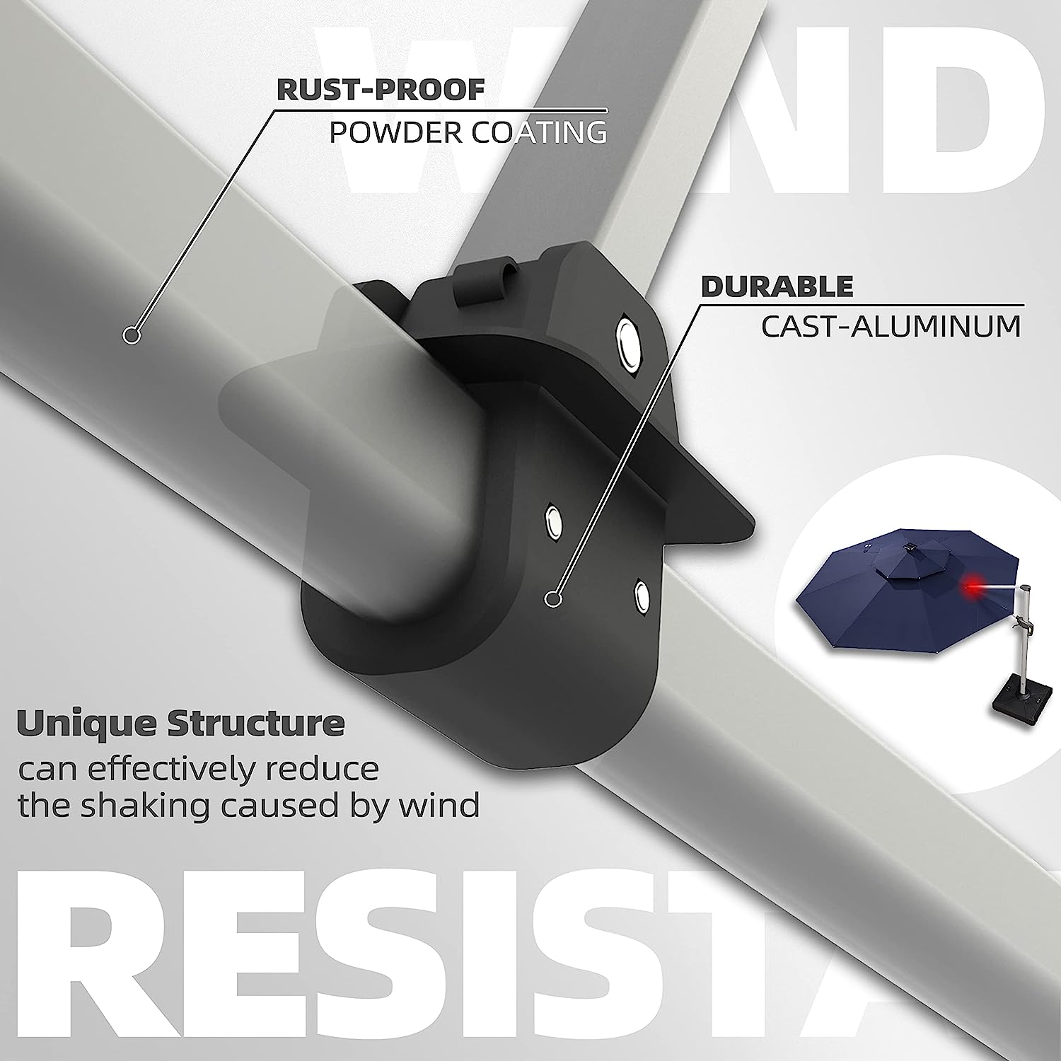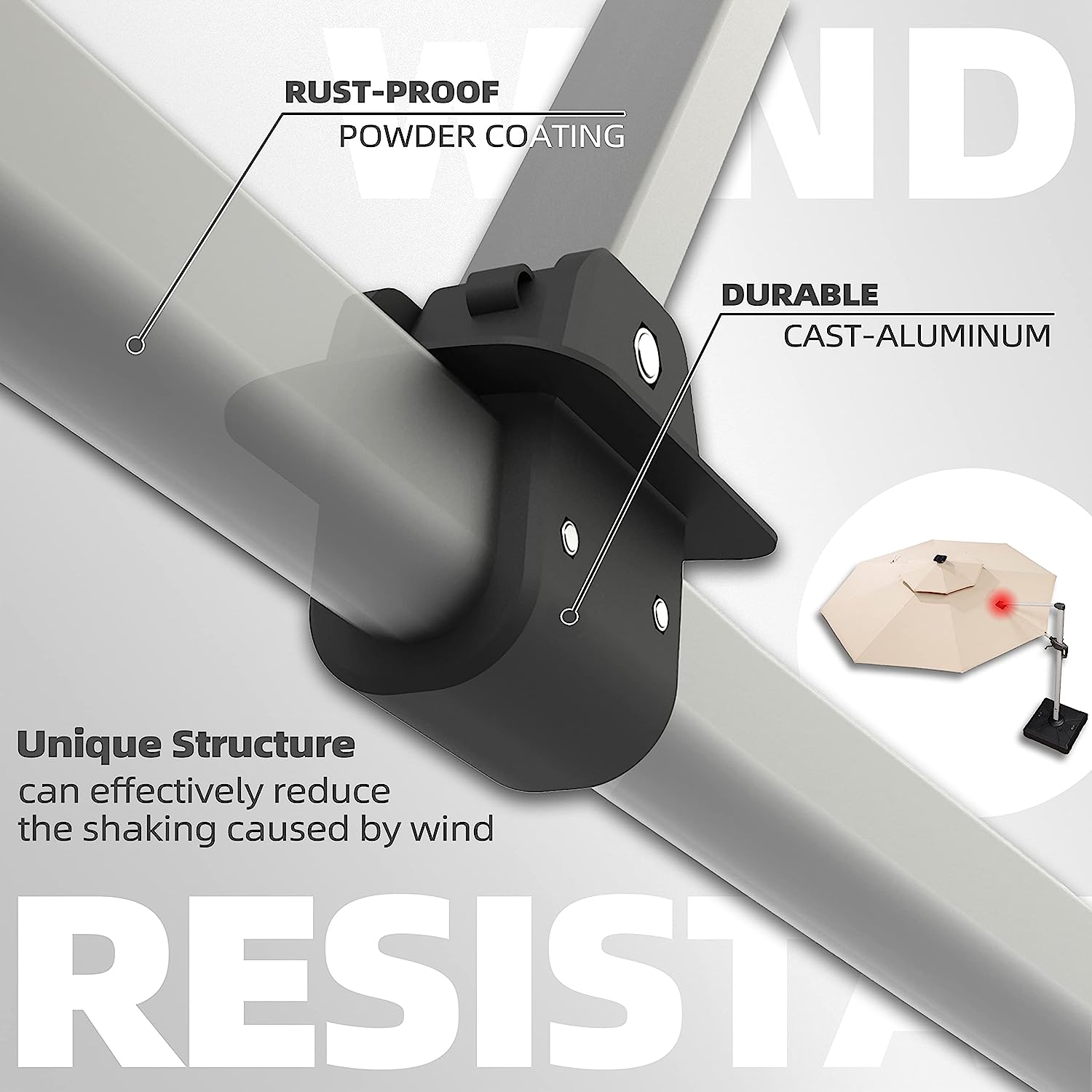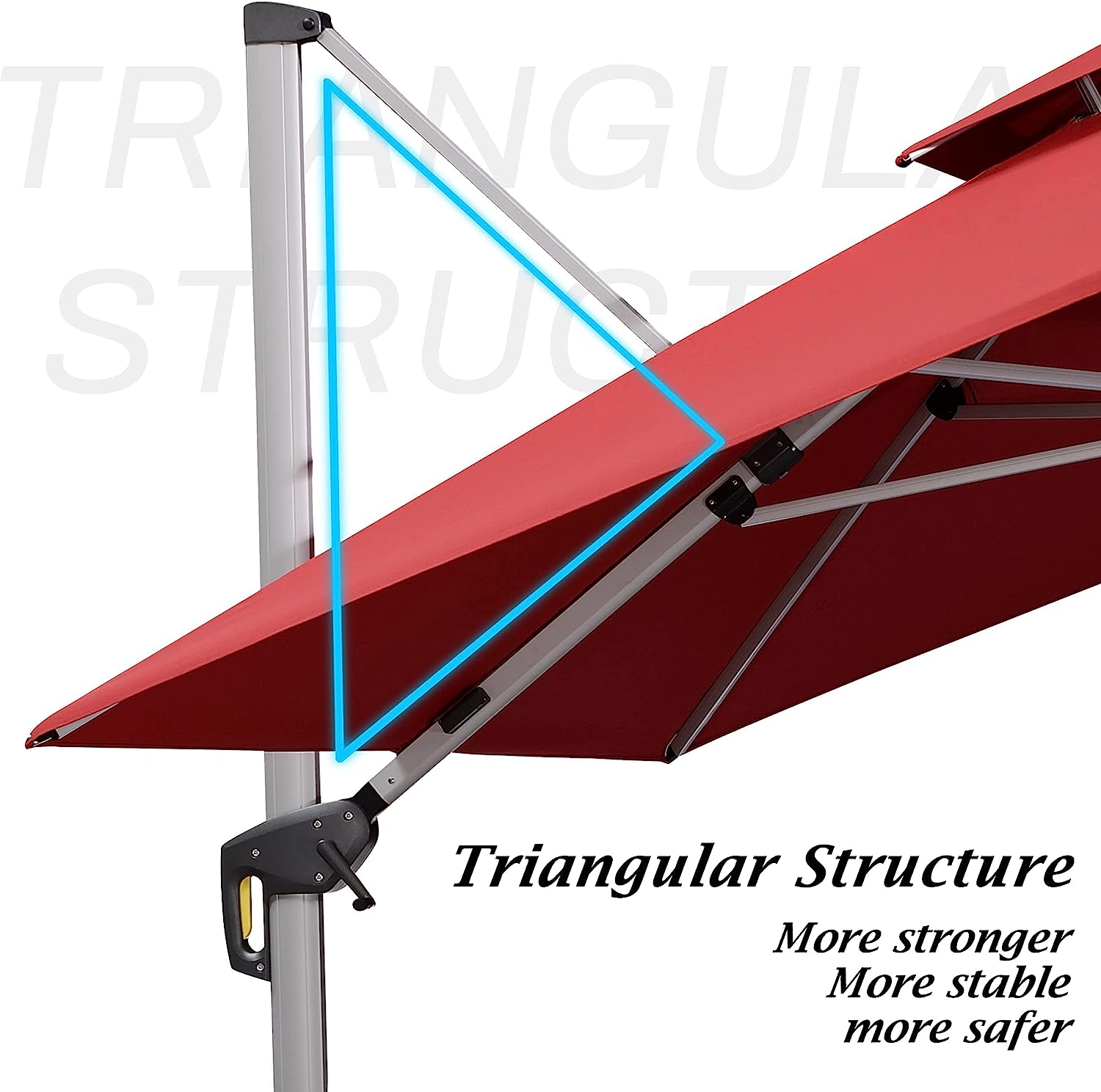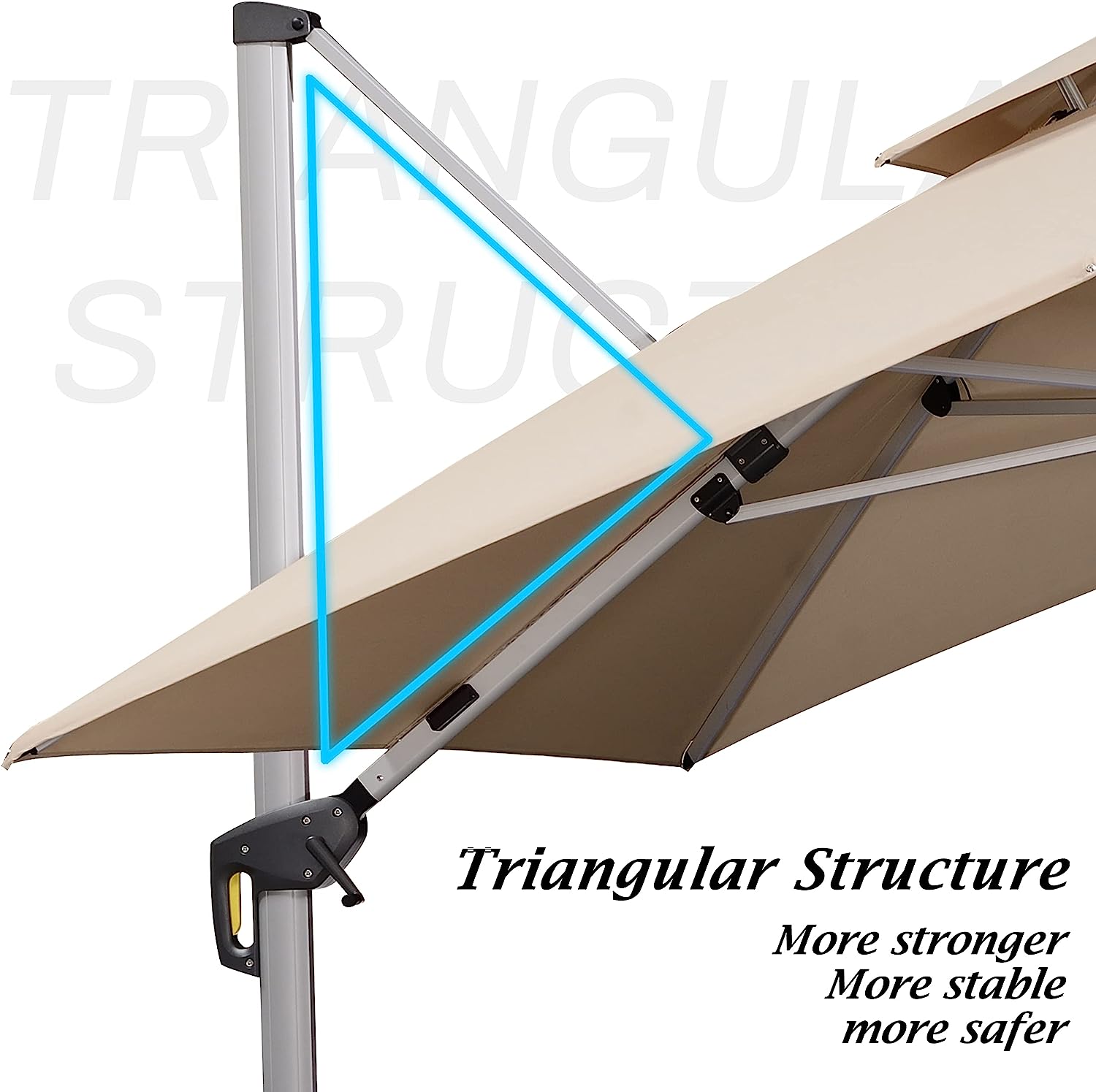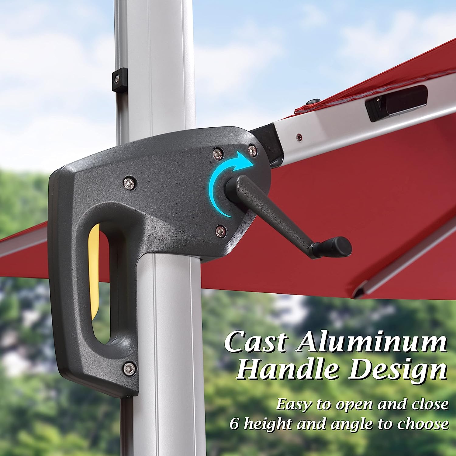 - This cantilever umbrella has unique handle design and crank system. 6 height and angles to choose. 360-degree rotation for easier shading area control