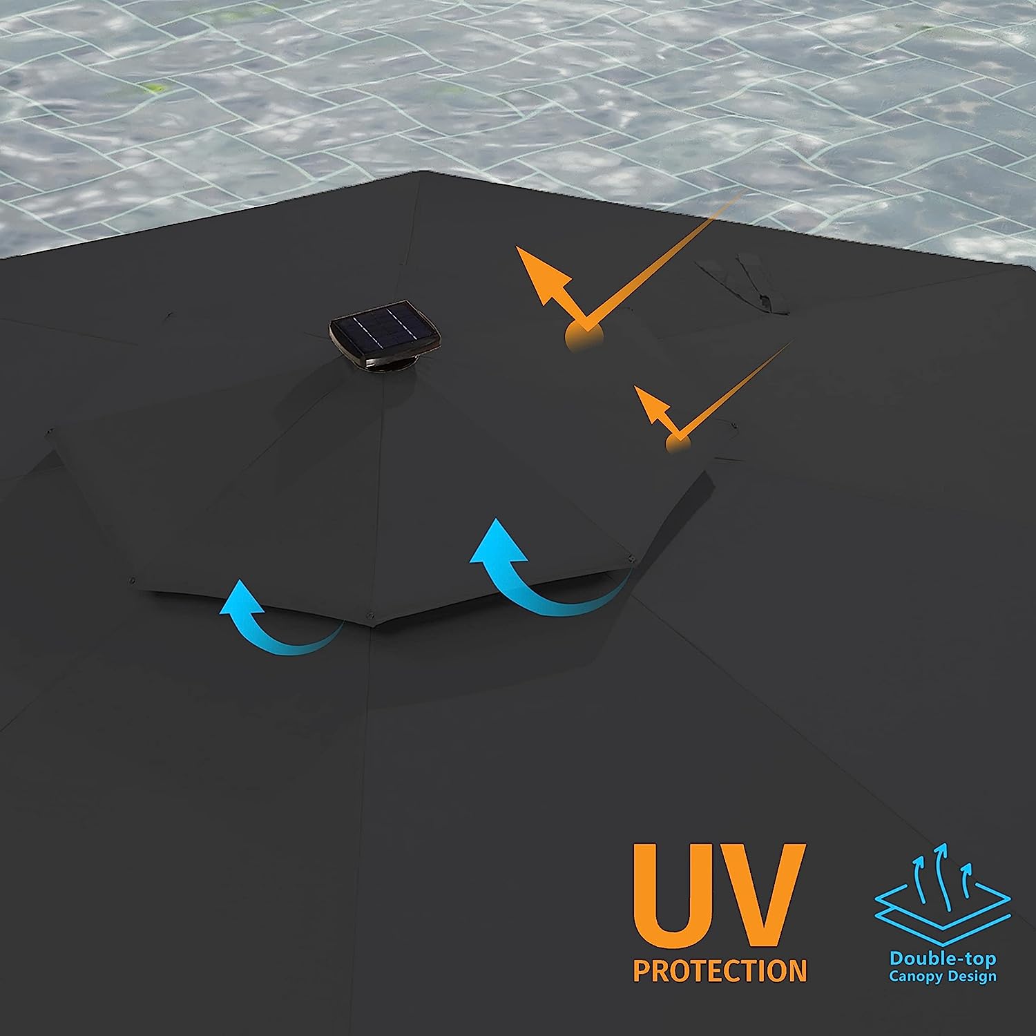 12ft Solar LED Patio Umbrella Outdoor Round Umbrella Large Cantilever Umbrella with LED Lights Windproof Bias Umbrella Heavy Duty Parasol for Garden Deck Pool Patio