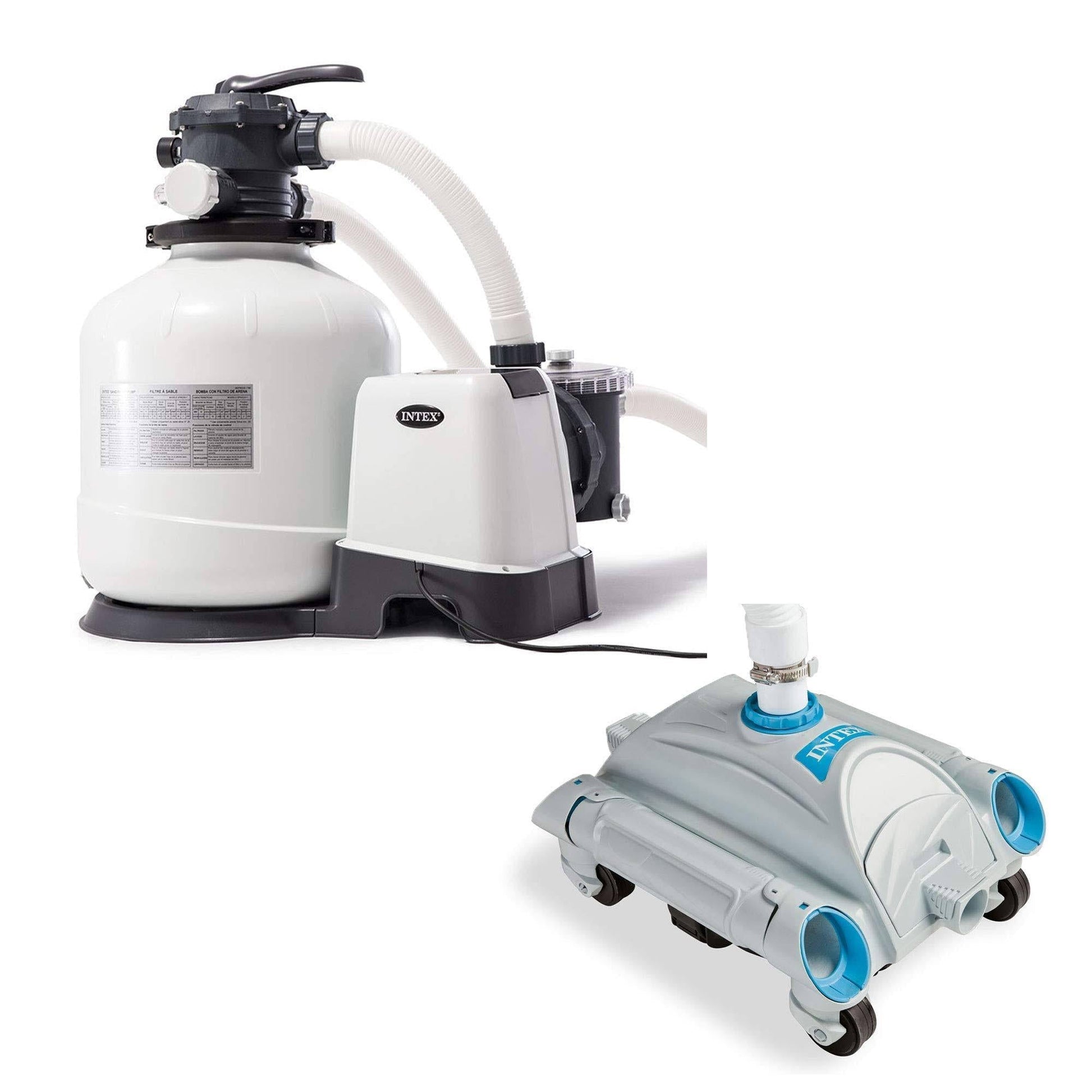 The 3000 GPH Above Ground Sand Filter Pump with Automatic Timer provides cool. refreshing. clear water. and less hassle every swim season. If you are tired of buying and replacing filter cartridges. this filter is the one for you. With virtually no maintenance. your sand pump only needs replacement every five years. This sand pump features a powerful motor. 6-function control. and a built-in automatic timer. It meets the UL standards and is an excellent upgrade to the filter cartridge system on your Above Ground Swimming (Easy Set. Metal Frame. and Ultra Frame — up to 19.600 gallons). This package also includes the Automatic Vacuum which connects to your filter pump to do the cleaning for you. Using venturi suction. this automatic vacuum will keep the bottom of your clear of leaves and other debris. Not suitable for in-ground pools. this cleaner was designed for above ground swimming pools with 1.5-inch hose fittings and attaches to the outlet connector in the with a 24.7-foot hose. Maintenance is a part of every swimming and with this Sand Filter Pump and Automatic Vacuum you'll have the right tools for the job. cutting down on your time spent cleaning.