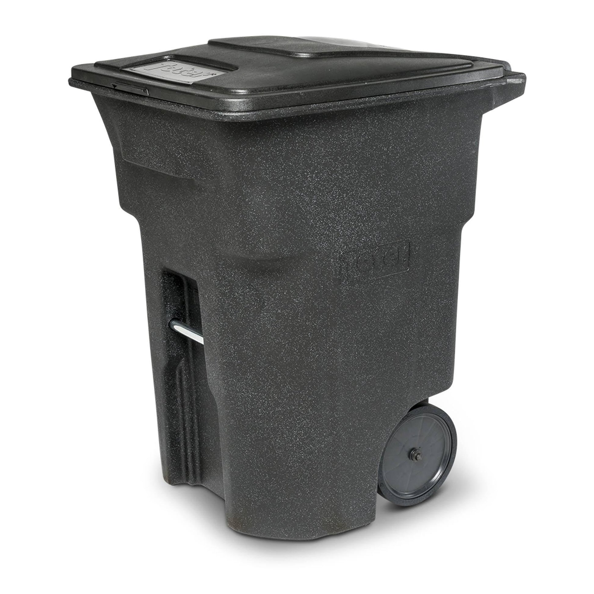 's 96-gallon trash cans have a long-lasting service life and are very durable. This can is designed to serve as either a waste bin or a recycling container. cans are manufactured with Advanced Rotational Molding technology. which creates an impact-resistant can with superior durability. trash cans are designed to keep working long after others fail – more than 2X longer. Transportation of the can is simple. no matter how . This can is easy to tilt and roll from the garbage area to the waste area and back. The attached lid keeps contents securely inside. It is fully compatible with automated and semi-automated curbside pickup from waste trucks and mechanical lifters. Built with quiet-cap wheels that reduce noise when moving the can.