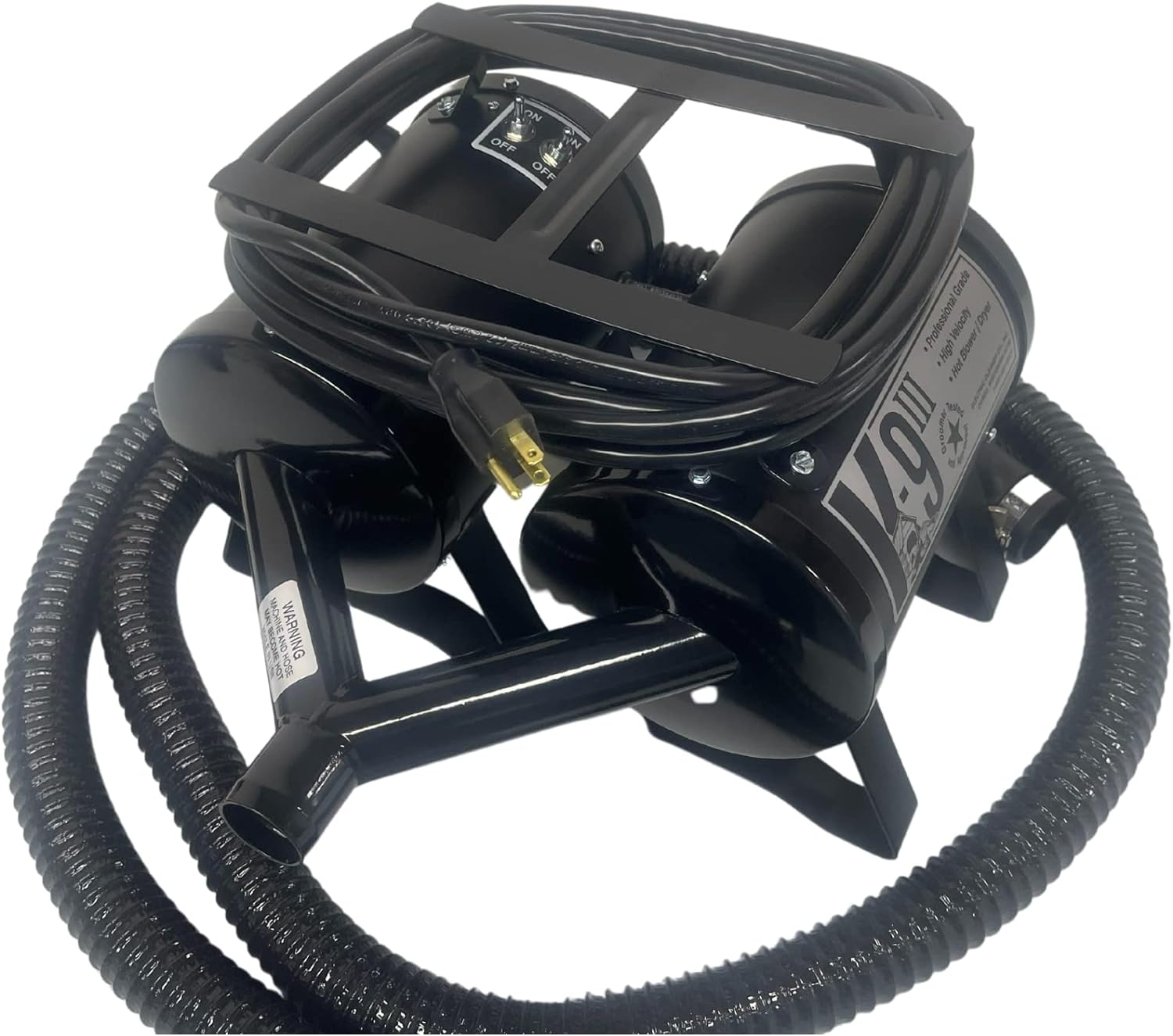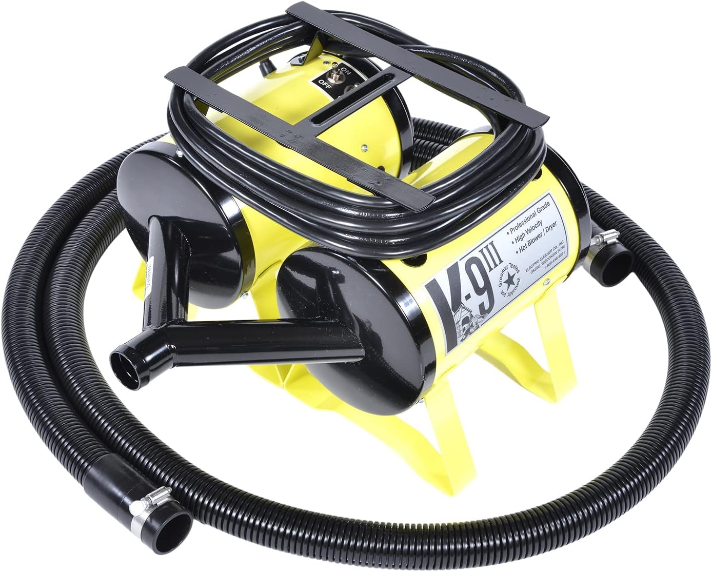 - The Most Powerful Dryer on the Market- The K-9 III is a high velocity dryer for dogs that has dual motors with a two-speed operation. It runs on 18 Amps. 120 Volts and has a 10' hose attached