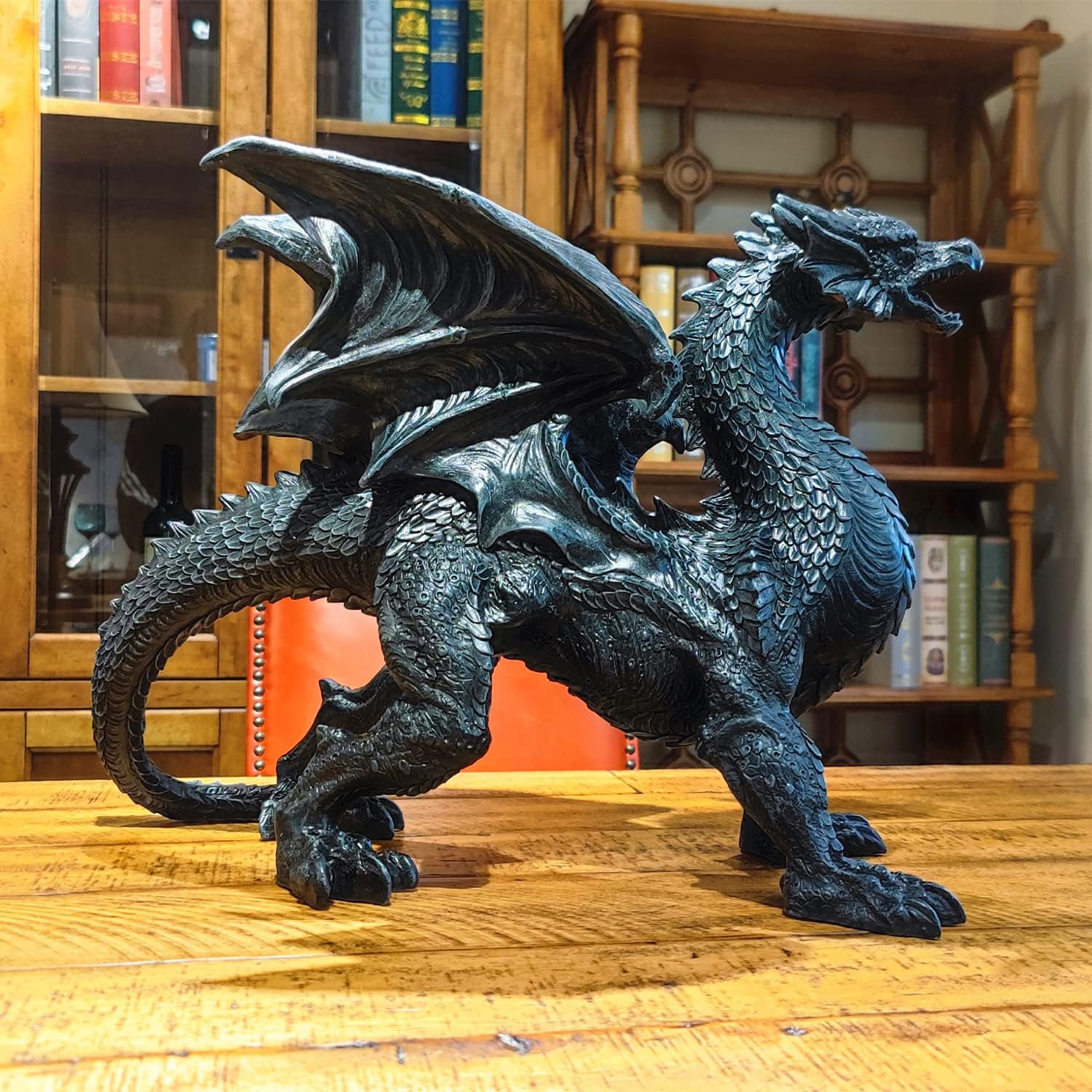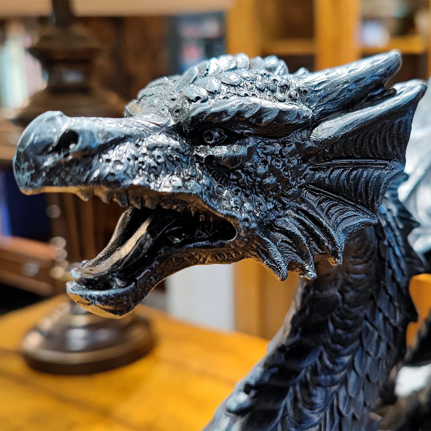 - 【Gothic Medieval Mythic Roaring Dragon Statue】 This roaring winged dragon statue is a gorgeous and stunning piece of art. It is majestic and would be an excellent addition to your fantasy and medieval decor.