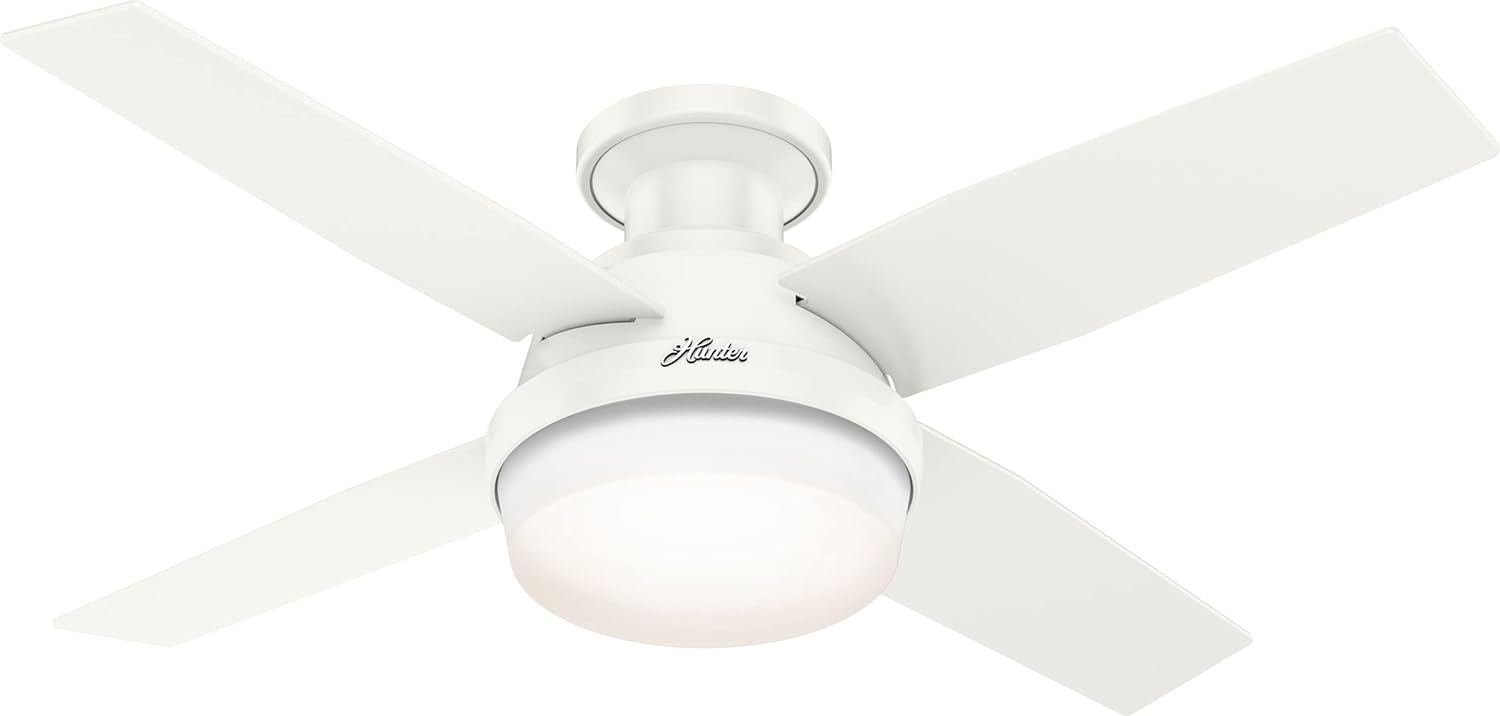 Hunter Fan Company Dempsey Low Profile Indoor / Outdoor Ceiling Fan with LED Light and Remote Control, 44", Matte Nickel