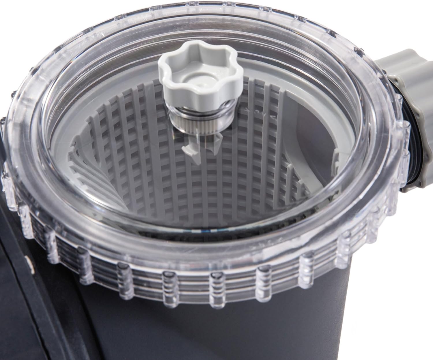 - Built-in 24-hour timer. allowing you to set automatic filtration times. reducing daily maintenance; Pump includes an ergonomic handle. pressure gauge. and a ground fault circuit interpreter (GFCI)