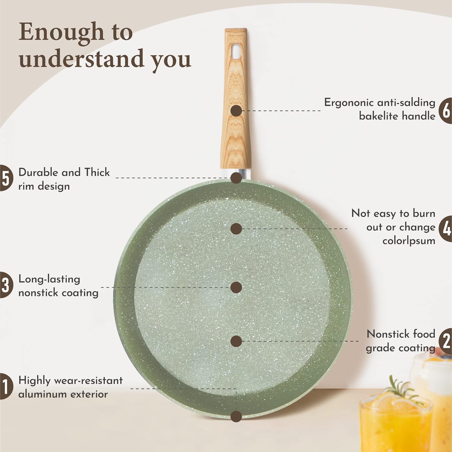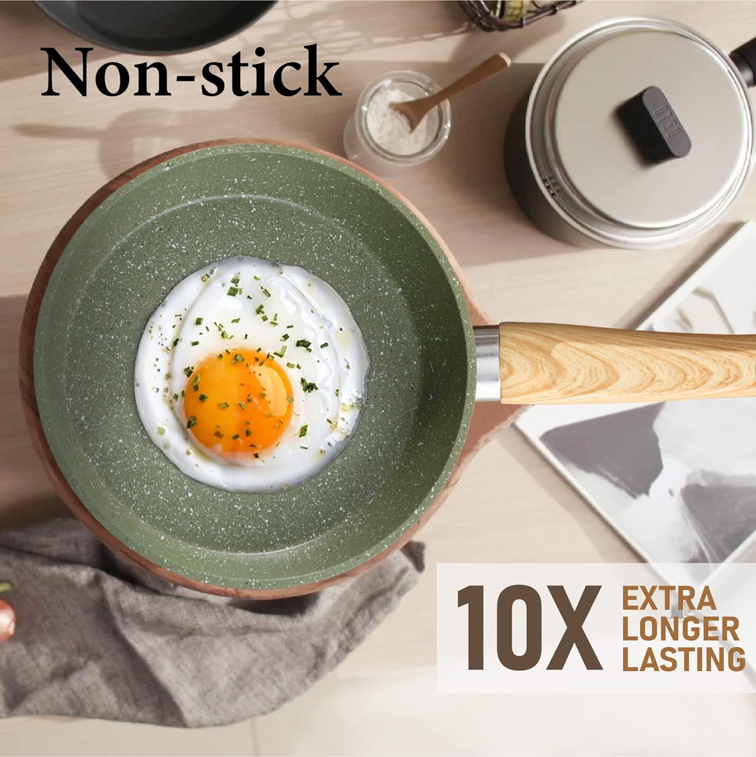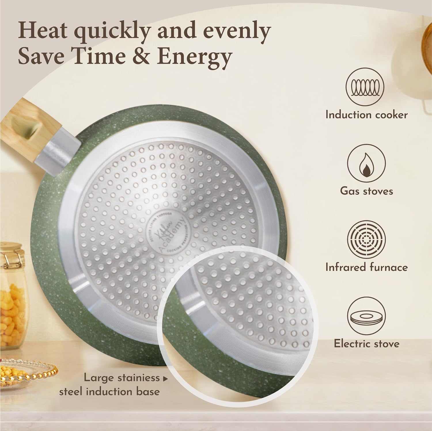 Kitchen Academy Induction Cookware Sets - 12 Piece Green Cooking Pan Set, Granite Nonstick Pots and Pans Set