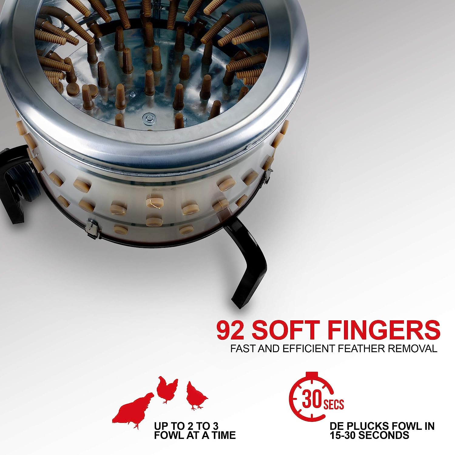 - PROFESSIONAL CAPABILITIES; Our powerful. reliable Fowl and Poultry Feather Plucker has a durable structure. capable of 2-4 birds at one time in just 15-30 seconds per foul (that's 3-4 in under 2 minutes) (depending on the size of the fouls and if properly scalded. will guarantee high speeds and efficiency)