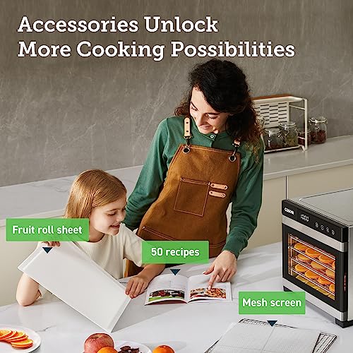 - FULLY EQUIPPED: Your food dehydrator comes with 6 stainless steel trays (12 x 13 in). 1 mesh screen. 1 fruit roll sheet. 1 user manual. and a 50-recipe cookbook. Search for C267-2MS or C267-FR to find more accessories
