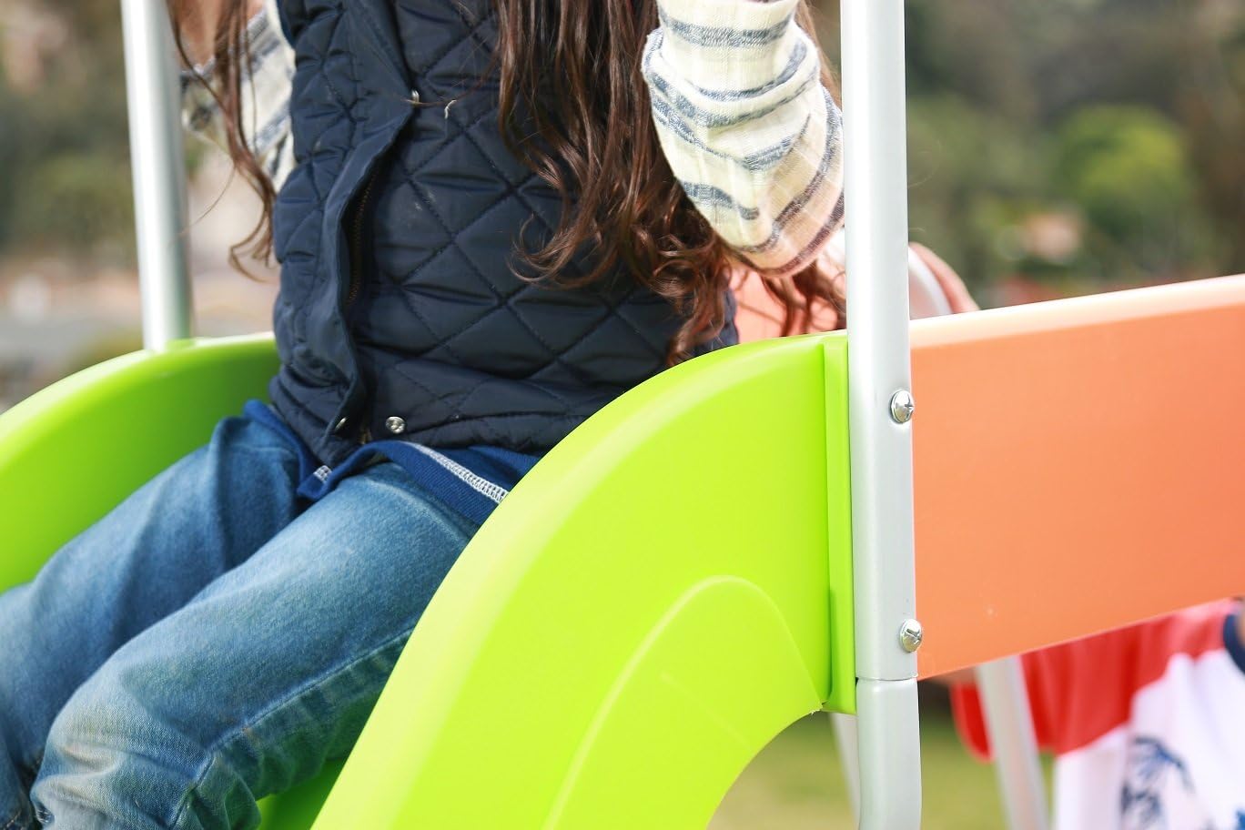 - EXCEEDINGLY SAFE==>Comes with a support bar for stabilization. deep chute sides. wide easy-to-climb steps. and smooth metal handrails that are designed to be perfectly safe for younger children. This premium quality toy consists of a sturdy steel frame. durable steps and chute made from a non-recycled plastic. coated with a UV-protected. fade-resistant. attractively colorful finish. Our slide exceeds ASTM Safety Standards for maximum child safety; It will safely last you for years!