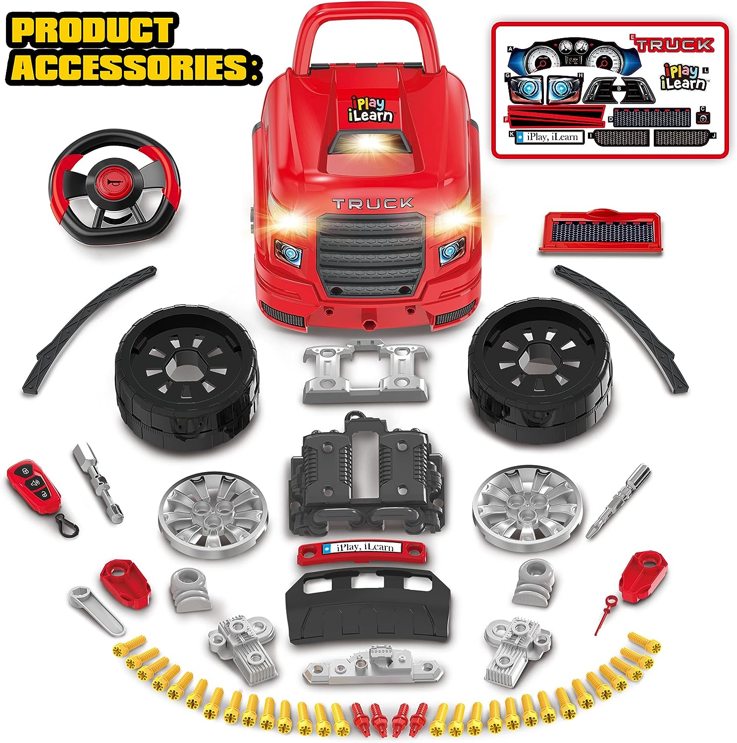 - 【Repair Engine Toy-Jumbo Size】BIG Truck Engine that can be assembled and disassembled. two repairing tools. a RC car key with simulated lock. unlock/alarm and engine sound effects. and DIY sticker set! 58 parts and tools. each engine part can be removed for "repair". Batteries not included.