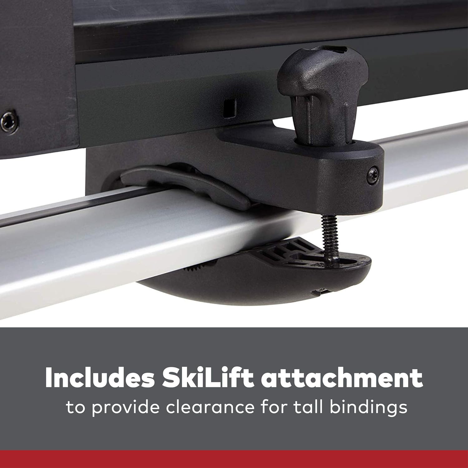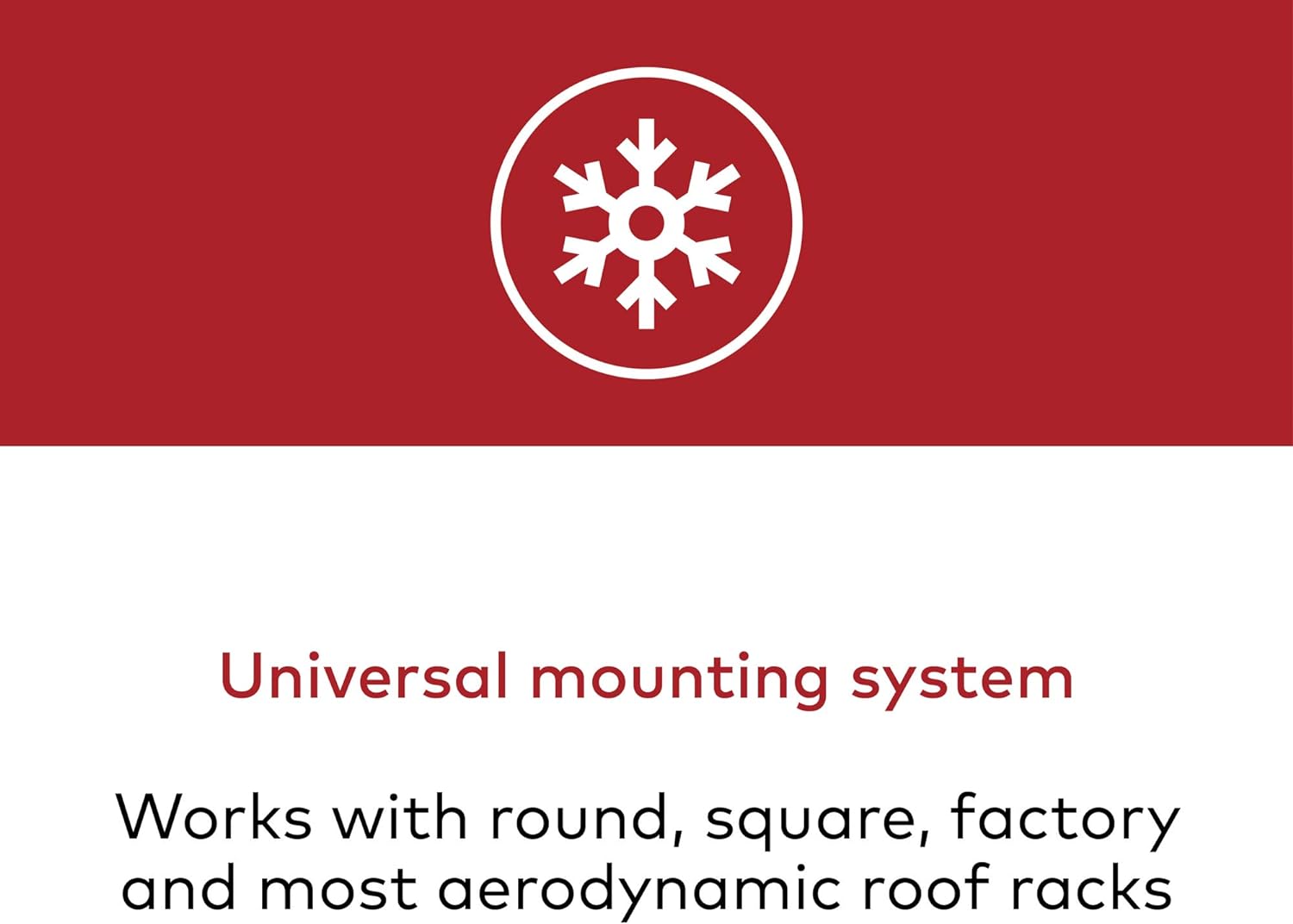 - Ski & snowboard mount: An elegant mount system that is wide enough to carry up to 6 pairs of skis (96mm wide at tips) or 4 snowboards